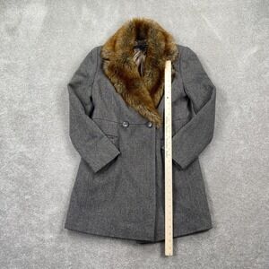 French Connection Faux Fur Collared Wool Pea Coat Jacket Women's Size 8 Gray