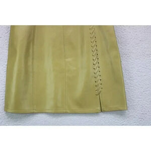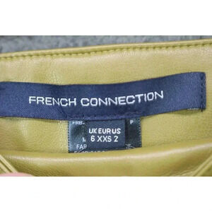 This is a French Connection Faux Leather Crolenda Skirt that is a size 2. It is new with tags and retails for $78. It is soft as butter. It has a 25.5" Waist and the Length is 17". It is 100% Viscose with a Polyurethane Coating. The lining is 100% Polyester. It is a pretty olive green color.