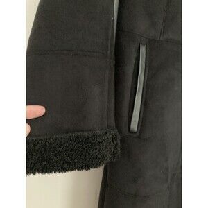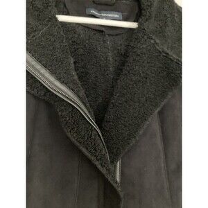 French Connection Faux Shearling Hooded Coat Jacket SMALL Black