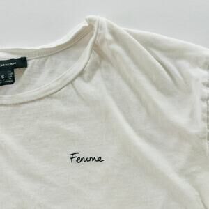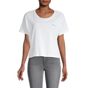 French Connection Femme Cotton Cropped T-Shirt White Size Small Crewneck Jersey