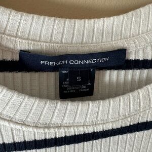 French Connection Fitted Ribbed Striped T-Shirt Dress (S) dark navy and white