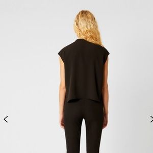 New with tags Size 8 Black cropped cap sleeve blouse with ruffle down the front.
