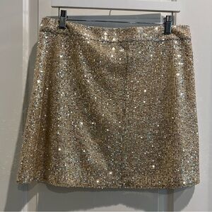 French Connection Gold Sequin Skater Mini Skirt size 12