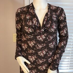 French Connection Gray Long Sleeves Front Drape Back Tie Floral Blouse Size S