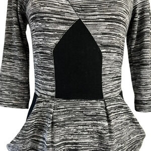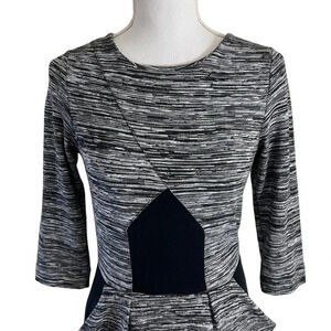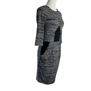 French Connection Gray and Black Striped Marled Dress Size 6 Knit Pockets Office