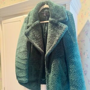 Great coat for all the Fall vibes! It is unique and the green certainly stands out. The quality is great and the coat is in wonderful condition! Tried to capture the green in the pictures, but I feel like it's a little more vibrant than the pictures show, especially in the sunlight.