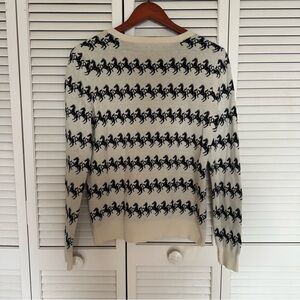 French Connection Horse Print Crewneck Sweater Button Shoulder Equestrian