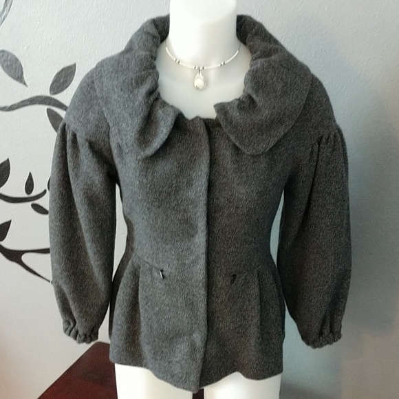 EUC - Such a cute jacket. Snaps in front, has 2 zippered pockets, and 3/4 length sleeves. Made of cotton and polyester. Lining made of rayon. Measures approx 18" armpit to armpit with jacket snapped closed. Measures approx 22" in length.