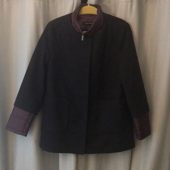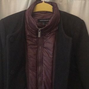 This is a great jacket, classy with a little edge. The puffy coat part on the inside of the jacket is a really nice merlot color and can be removed. Only worn a handful of times.