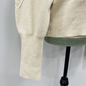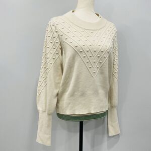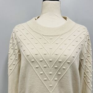 French Connection L Cropped Bobble-Stitch Knit Sweater Cream Cottage Preppy Chic