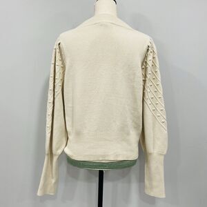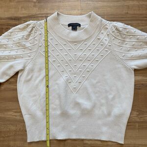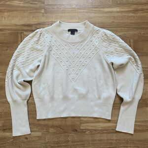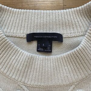 French Connection L Cropped Bobble-Stitch Knit Sweater Cream Cottage Preppy Chic Feminine
