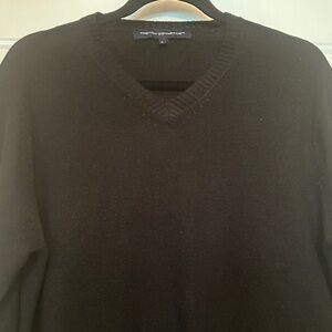 French Connection LG Black V-Neck Acrylic Sweater Classic Minimalist