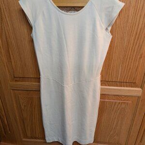 Worn once French Connection dress. If you are a bride, this is great for a bachelorette party. The dress is a creamy off white and not a pure white color. The lace back is fully open.