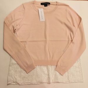 Cozy cotton sweater with pretty lace insert in a soft blush pink shade. Size medium. Brand new!