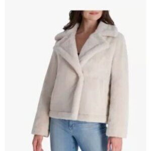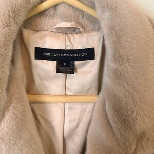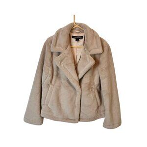 French Connection Large Women Winter Faux Fur Short Coat Notched Lapel Jacket