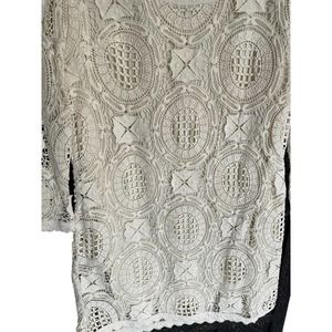 French Connection Lark Rise lace dress; cream color; scalloped crochet trim throughout; scoop neck; sheer long sleeves, Imported