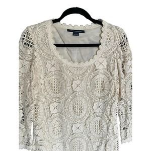 French Connection Lark Rise Lace Dress Scalloped Crochet Trim Size 4 Cream