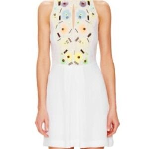 French Connection Lilli Sequins Flared Party Dress Women's 2 Ivory Lined . This dress is a stunner! Gorgeous beaded and sequin bodice, flare styling for the skirt and generous keyhole back closure. Super sexy, yet classic and modest. Excellent condition from a non-smoking home. Measurements: PTP: 15" Waist: 26"