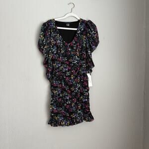 French Connection Long Sleeve Floral Mini Dress Black Size 2 New