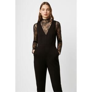 French Connection Lula Lace Black Jumpsuit 2 Sheer Mock Neck formal whimsigoth