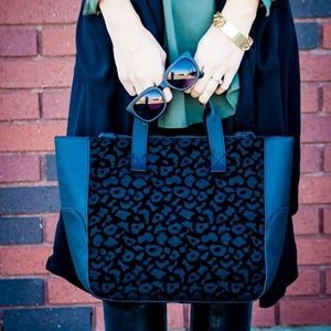 Excellent Condition Like NEW! Black with subtle animal print Medium tote with removeable shoulder strap zipper top