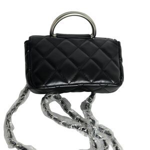 Smooth Diamond Quilted mini bag. Modern Design with logo metal handle and braided chain crossbody strap. Perfect for day to evening bag and easy to style into every outfit.