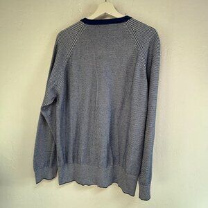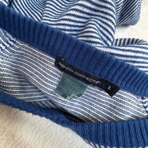 French Connection Mens Blue White Striped V-Neck Sweater Large Pullover Casual