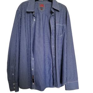 French Connection Men's Blue and White Striped Button-Down Shirt - Size XL