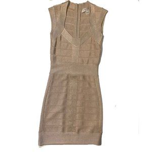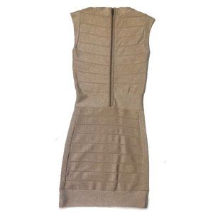 Sexy bandage dress from French Connection Classic! NWOT - never worn. Rose gold metallic fabric - 63% viscose, 15% polyester, 15% nylon, 5% metalized fibers, 2% elastane. Size 0. Approximate flatlay measurements: armpit to armpit - 13", waist - 11.75", length - 34.5". Excellent, unworn condition. Free shipping!