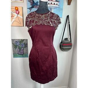 French Connection- Mini sequin detailed sheath dress- wine red- cocktail US 6