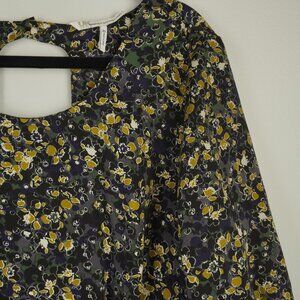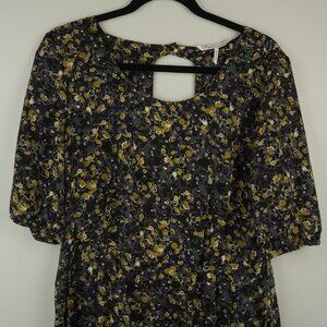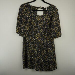 French Connection Navy Blue & Olive Green Floral Romper Keyhole Back Size 10