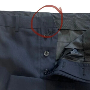 French Connection Size 32x29 Navy Button closure MISSING TOP BUTTON!