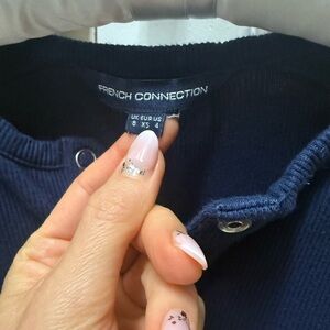 Bodycon Dress Navy, sz 4 XS Soft, stretchy fabric. Button-front detail adds casual, versatile style. Navy color works well with denim or tailored pieces.