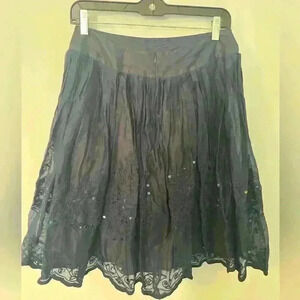 Cotton skirt from French Connection with a beautiful eyelet scallop hem with sequins. Zipper back closure and 100% cotton.