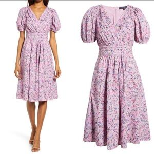French Connection New With Tags Flores Puff Sleeve Dress In Mauve Mist Multi
