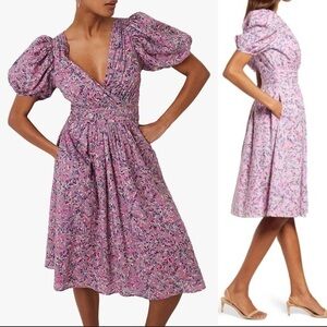 French Connection New With Tags Flores Puff Sleeve Dress In Mauve Mist Multi