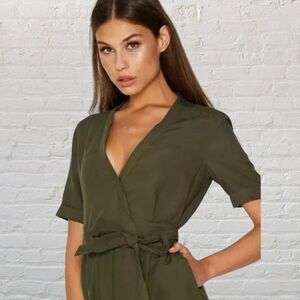 French Connection Olive Tencel Jumpsuit 8 Wrap Tie Military Casual