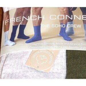 French Connection Organic Cotton SOHO CREW Socks NEW (5) Moisture Control Smooth