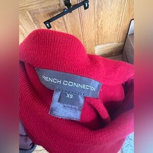 French Connection - Oversized Red Ribbed Cowl Funnel Neck Knit Sweater