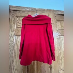 Stay cozy and stylish with this elegant knit oversized red sweater. Perfect for any occasion, this sweater adds a pop of color to your wardrobe. Size XS - but runs big and can fit a S/M, and possibly L. Excellent used condition to be safe, could be like new. No flaws.