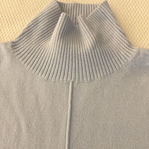 French Connection women’s oversized tunic sweater in powder blue. Ribbed collar, cuffs and hem. Center seam down front & back of sweater. Collar can be folded down. Cuffs can be folded up.