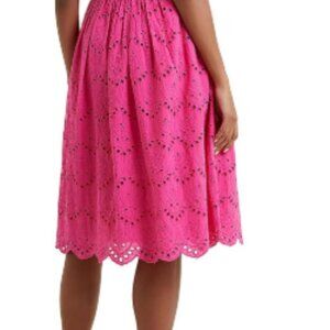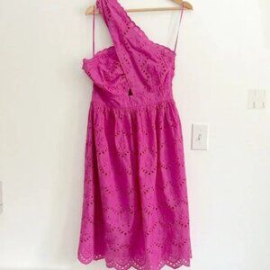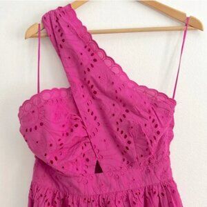 French Connection Appelona One Shoulder Cut-Out Midi Dress Pink Eyelet NWOT
