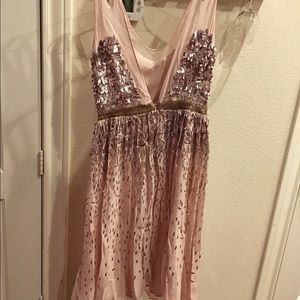 French Connection Shimmer Shower Sequin Midi Dress in Pretty Petal Pink Size 6 UK 10; length 41"; bust 16.5" (looser because backless) waist 13.5"; 100% viscose;low scoop neck dress with double vest straps; sequin bodice and beaded waistband; brand new with tags and extra beads; never worn; original retail $448; no trades; open to reasonable offers thanks!