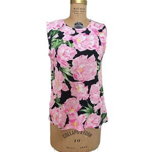 French Connection Pink and Black Floral tank top sleeveless T-shirt size medium