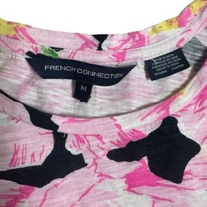 French Connection Pink and Black Tropical Floral tank top sleeveless crew neck T-shirt size medium cut on the bias and slightly longer on the back with slight swing shape. Lovely light jersey fabric. In excellent condition