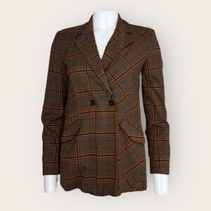 French Connection | Plaid Double-Breasted Blazer | Brown | Size 2 US