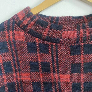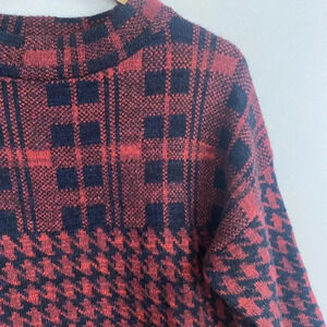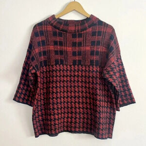 French Connection Plaid Houndstooth Wool Alpaca Blend Red and Black Sweater