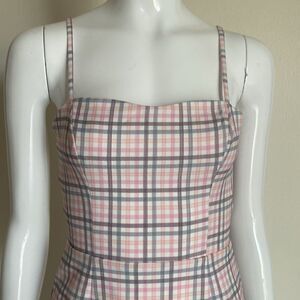 French Connection Plaid Pink Whisper Back Tie Mini Dress Size 0