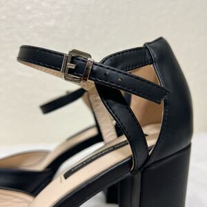 French Connection Platform Sandal Black Vegan Leather Heels Peep Toe Size 9
