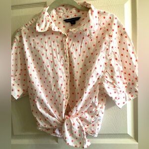 Gently used and excellent French Connection tie crop top measurements are 17” width and 20” for the length